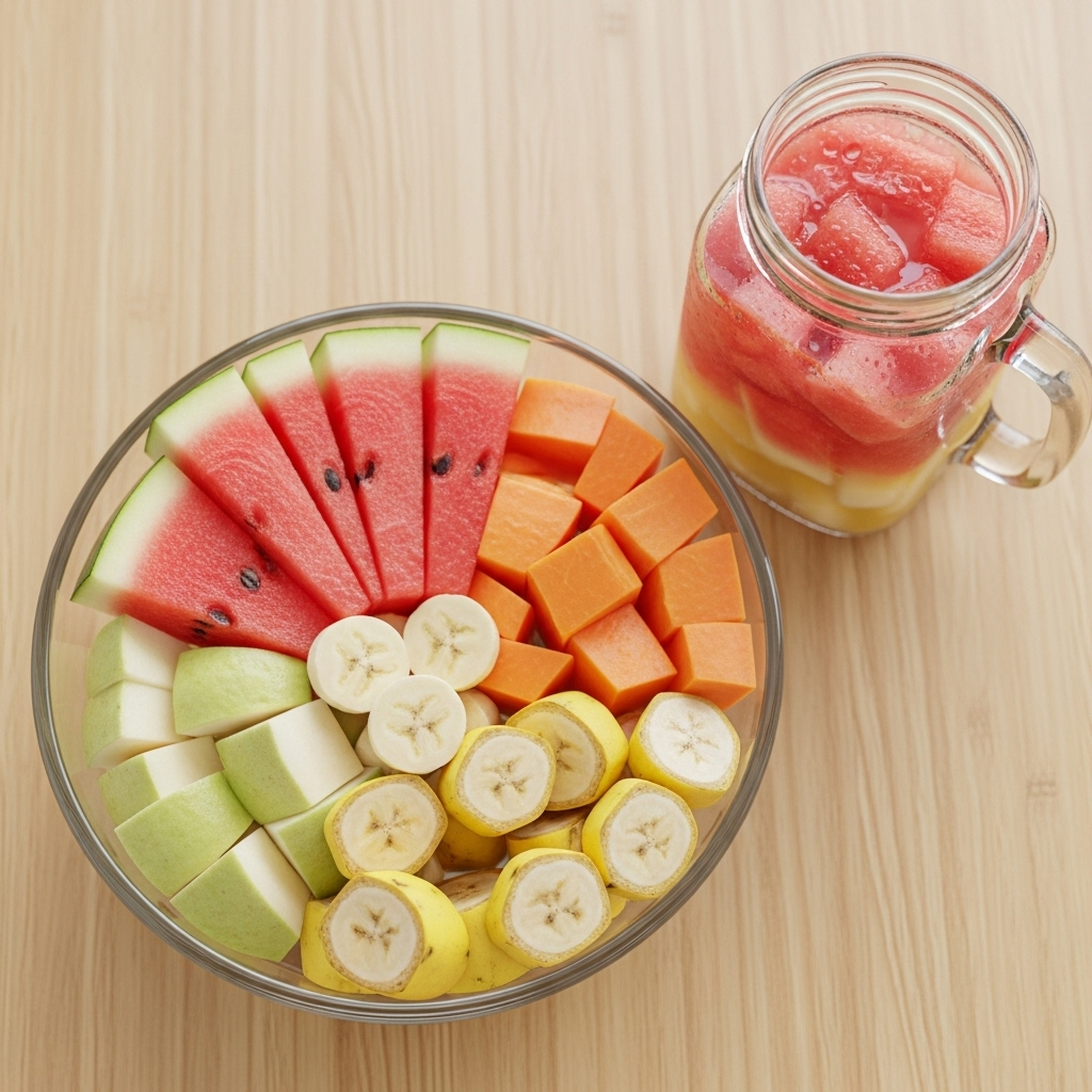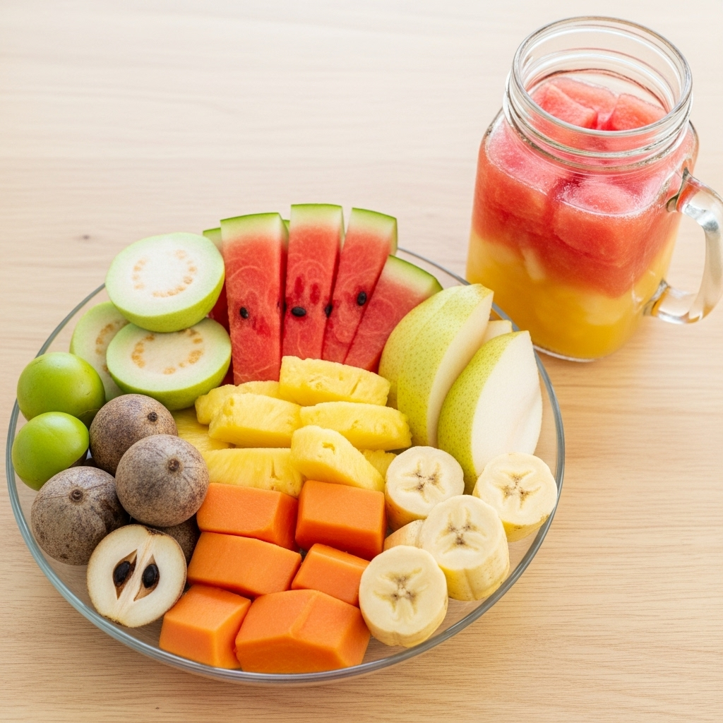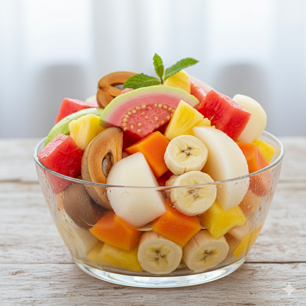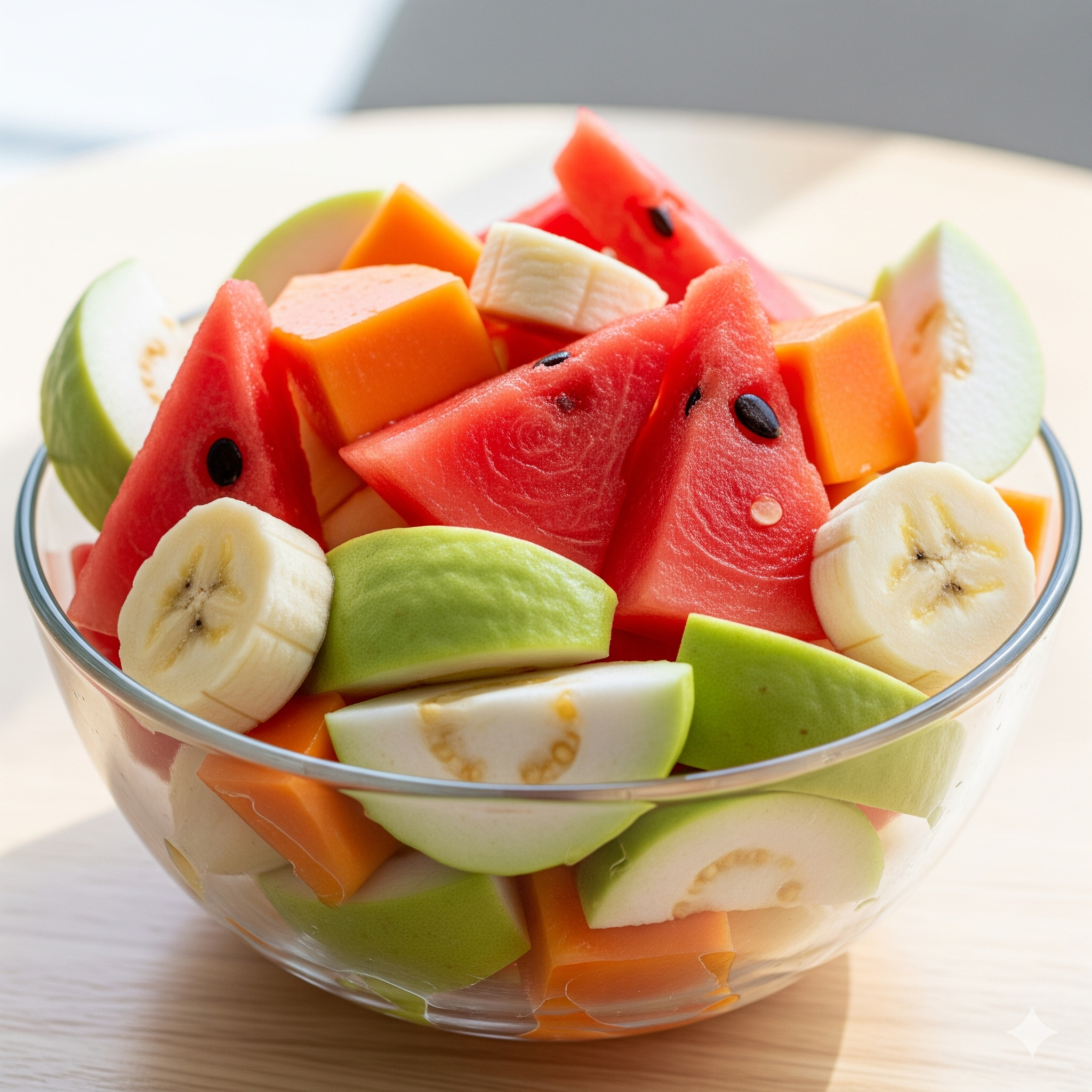 100g Watermelon, 50g Thai Guava, 50g Pineapple, 50g Pear, 50g Sapodilla (Chikoo) or Papaya or Banana (Any 5).