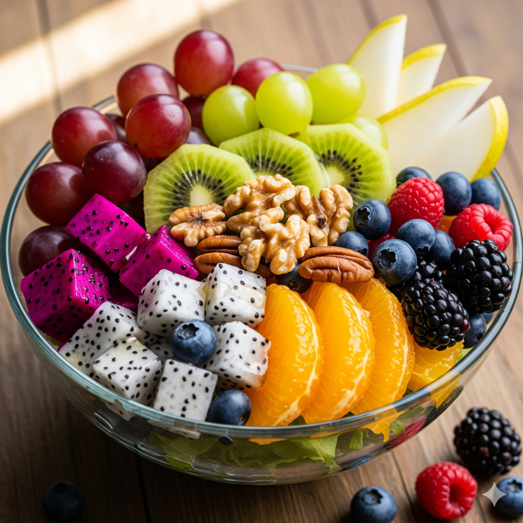 | Premium Fruit Platter | ₹120 | 50g Grapes, 50g Kiwi, 50g Dragon Fruit, 50g Pear, 50g Orange, 50g Nuts & Berries. Antioxidant Powerhouse with Healthy Fats |