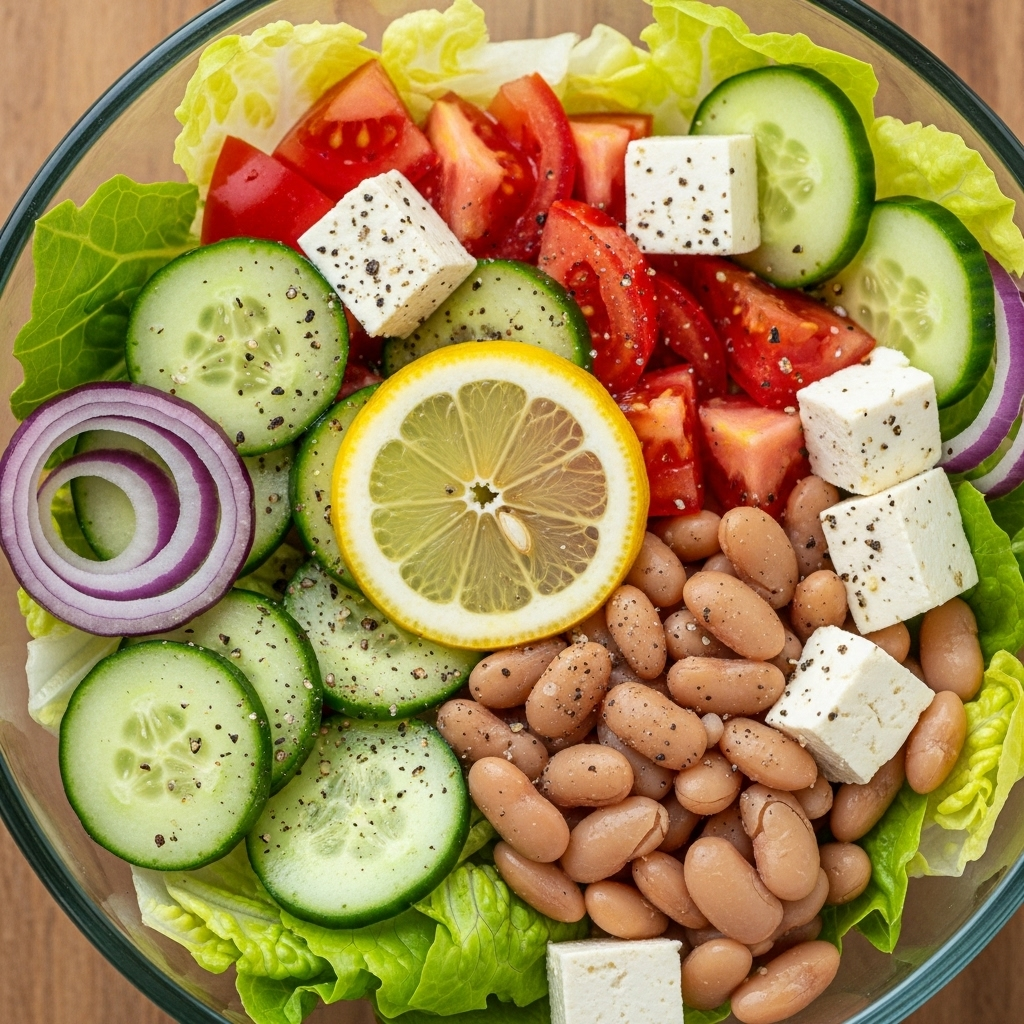 Cucumber, Tomato, Onion, Boiled Rajma, White Kidney Beans, Lettuce, Paneer. Tossed with Lemon Juice, Black Pepper, Sea Salt, and Olive Oil.
